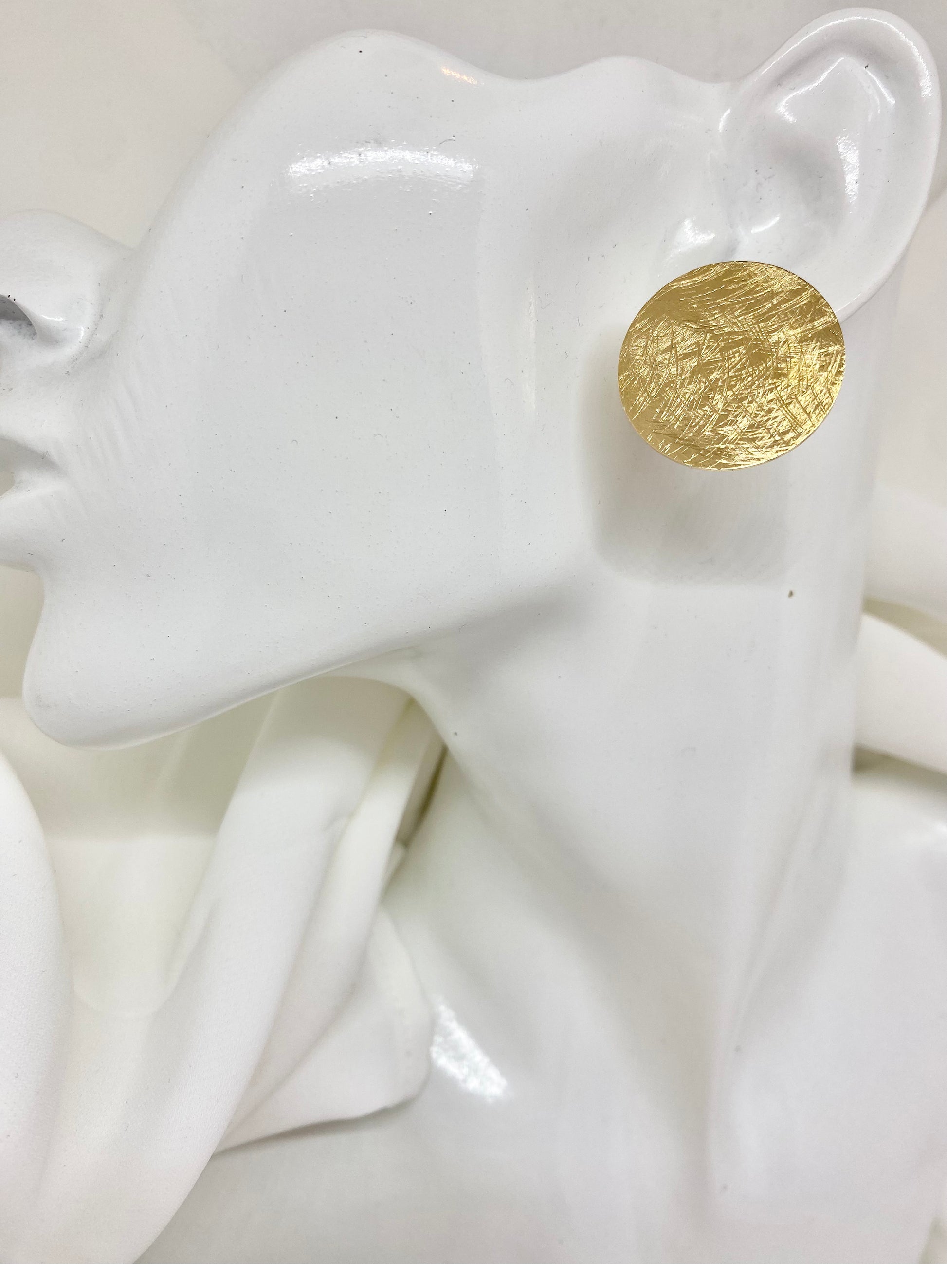 Boucles d'oreilles rondes et plates, subtilement rayées, alliant style contemporain et délicatesse pour une allure unique.