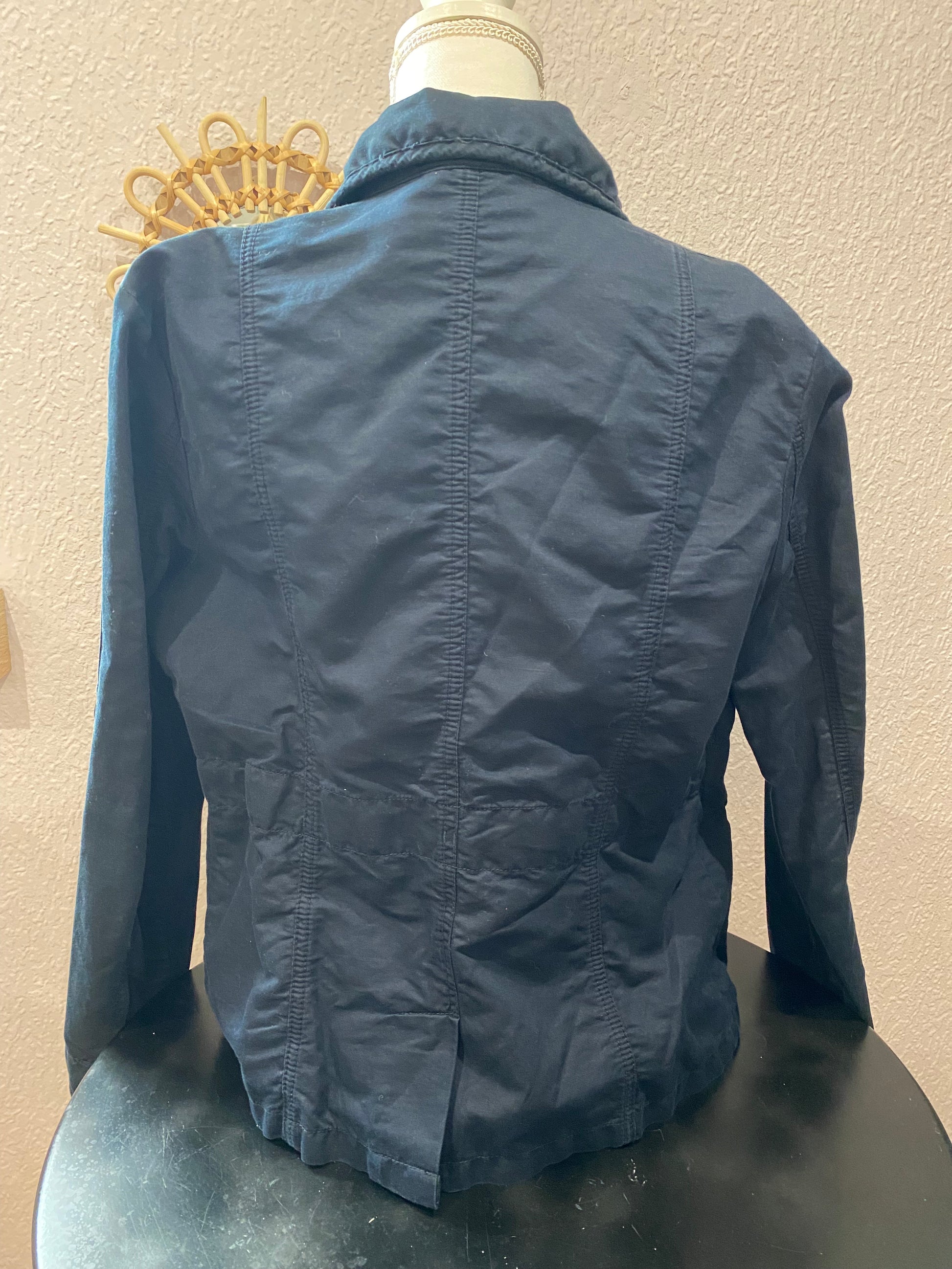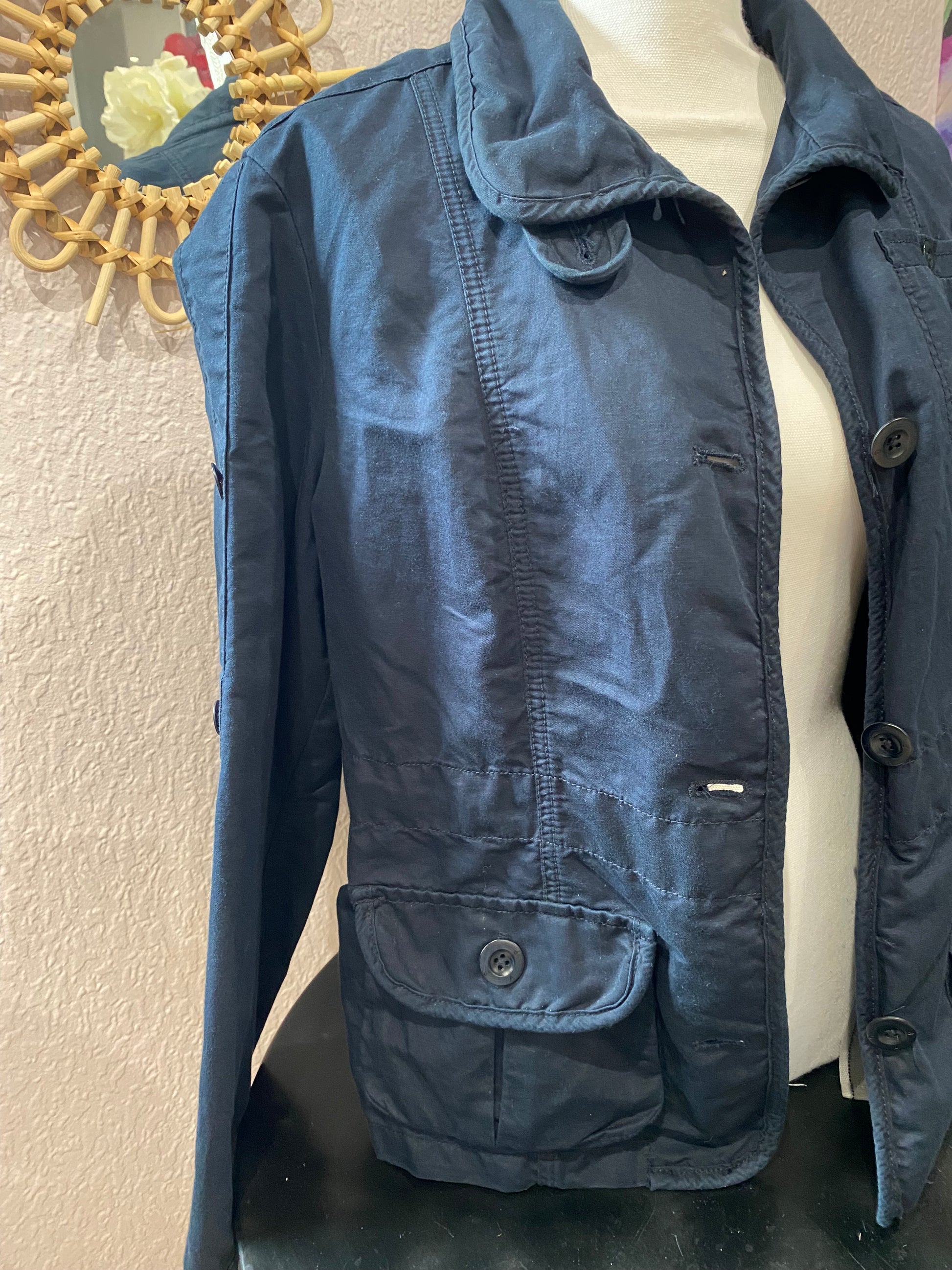 Cette veste seconde main "GAP" au style casual chic se distingue par sa coupe structurée et son tissu léger. Idéale pour la mi-saison, elle apporte une touche élégante et décontractée à toutes vos tenues du quotidien.