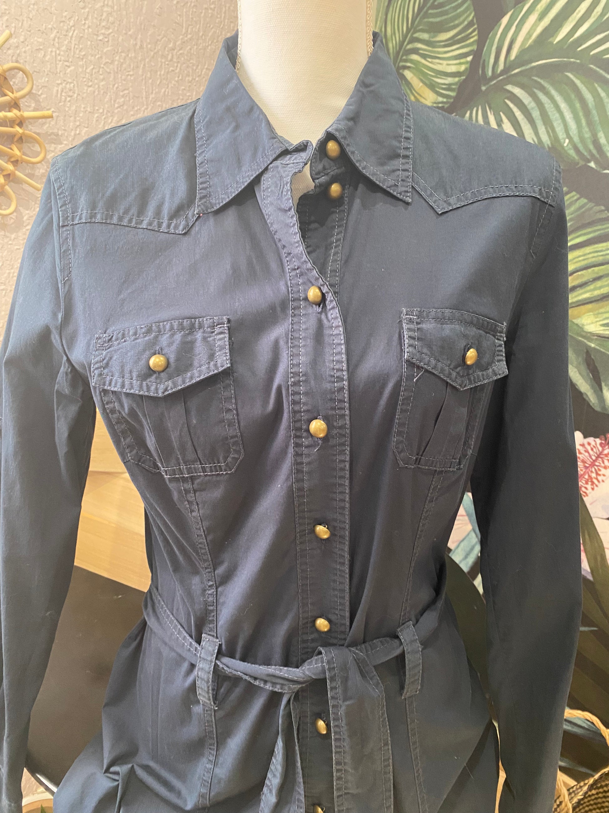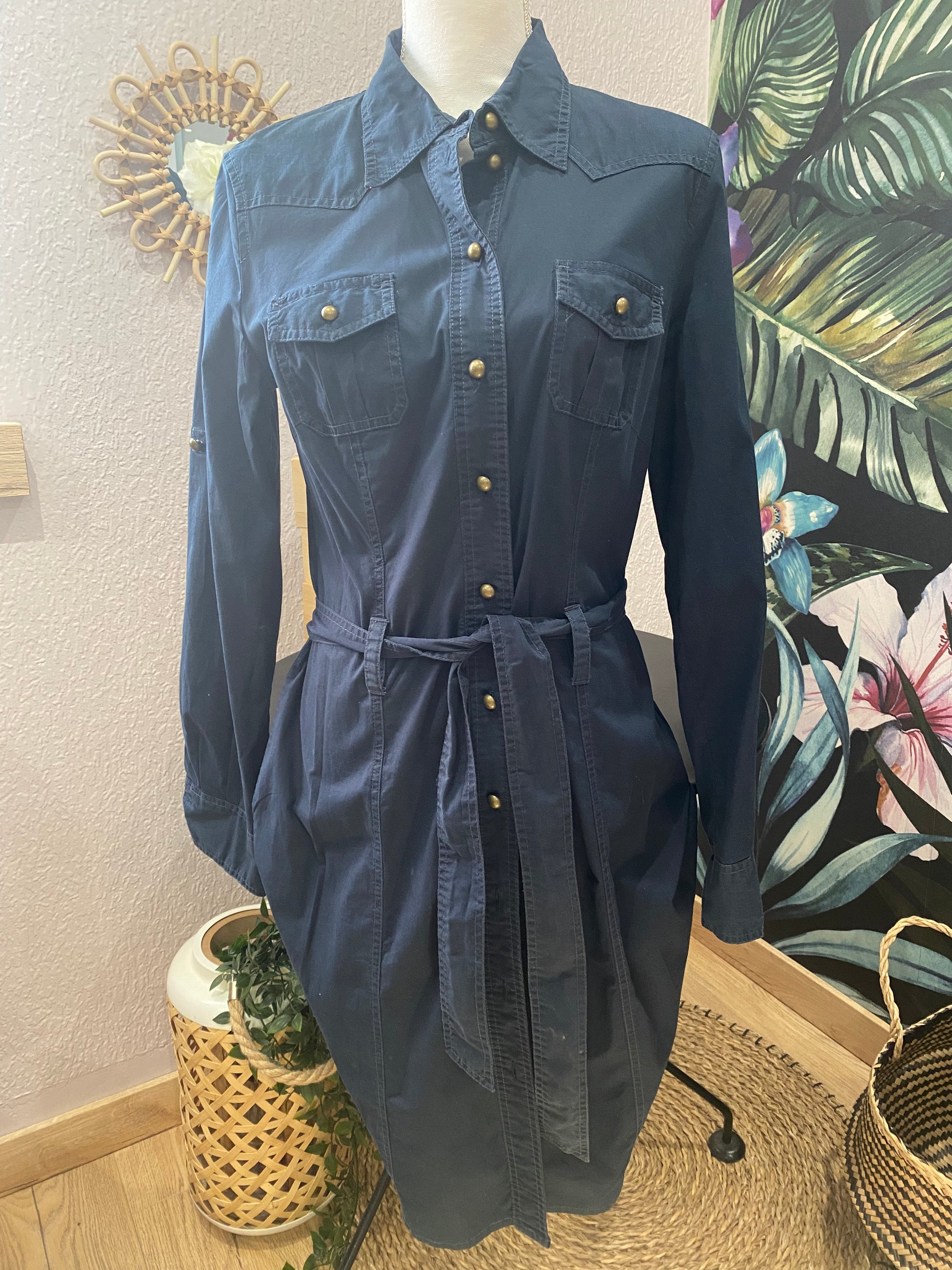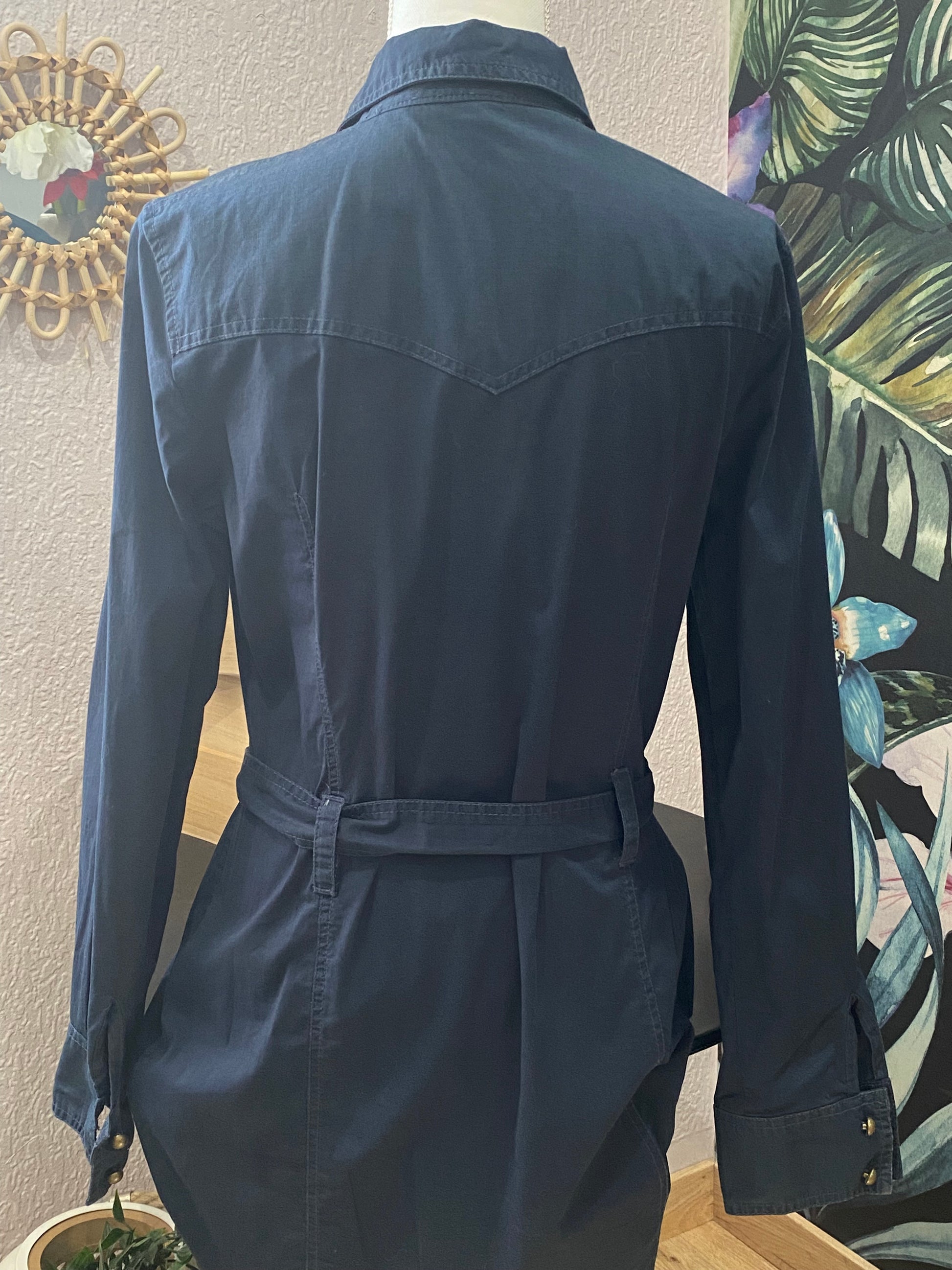 Cette robe chemise seconde main "ESPRIT" à l’allure utilitaire est un indispensable du dressing. Son tissu souple, sa ceinture ton sur ton et ses poches à rabat lui donnent un look à la fois structuré et féminin. Parfaite pour le quotidien ou à accessoiriser pour une tenue plus habillée.