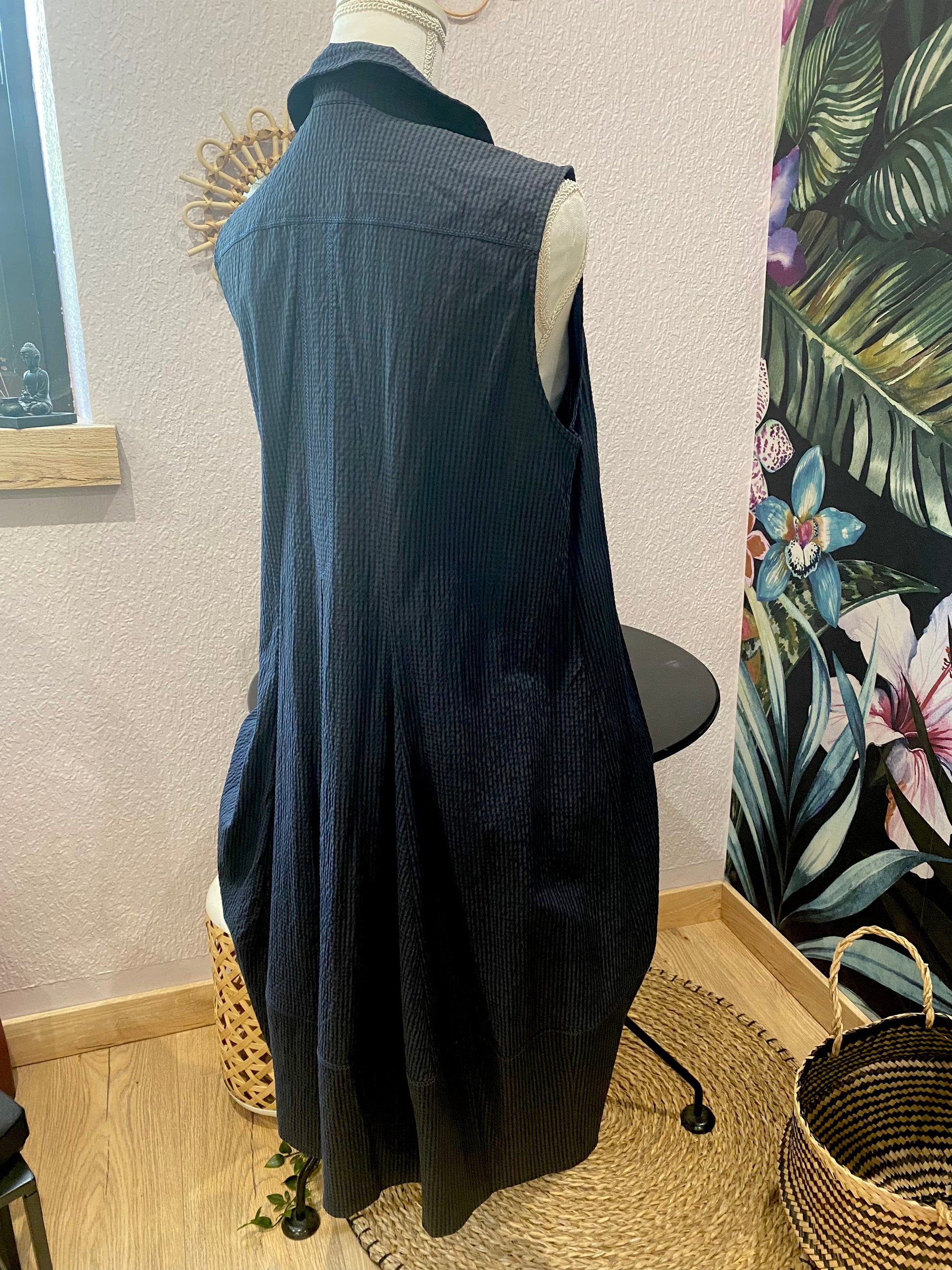 Cette robe seconde main de chez "CREA CONCEPT" au look sport-chic revisite la robe longue avec une touche urbaine. Dotée d’une fermeture zippée et d'un cordon de finition dans le col chemise, elle se distingue par son originalité et un tissu texturé pour une coupe confortable. Parfaite pour un style décontracté et original.